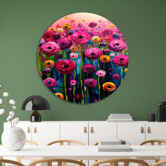 Kleurrijke abstracte bloemen schilderij aluminium muurcirkel