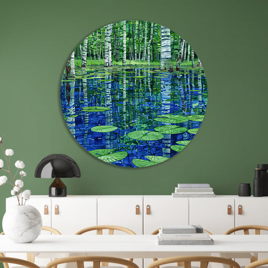 Bos en waterlelies kunst in modern design aluminium muurcirkel