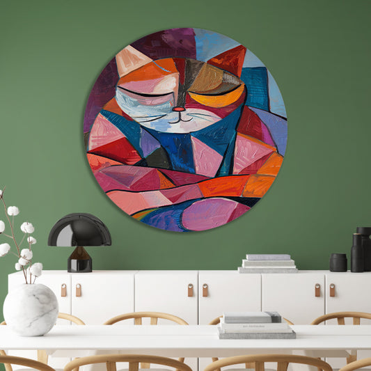 Kubistische Kat in Warme Kleuren aluminium muurcirkel