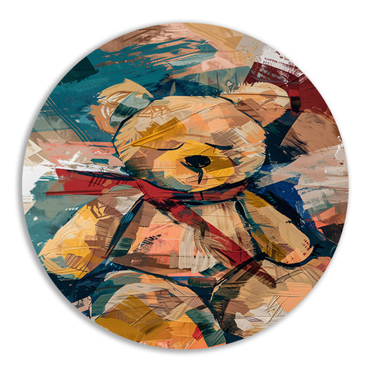 Abstracte Schilderij van een Teddybeer met Sjaal aluminium muurcirkel