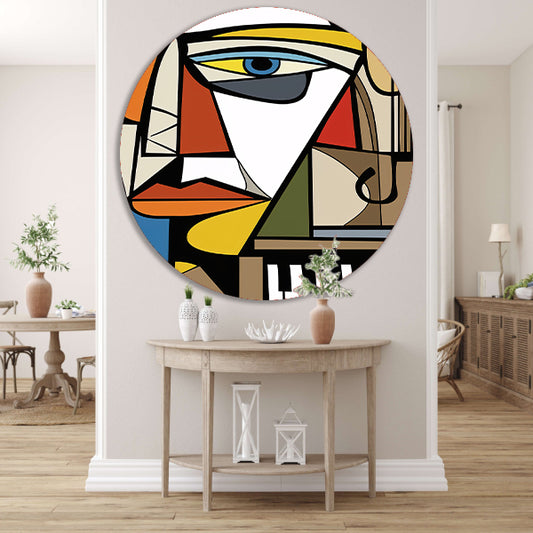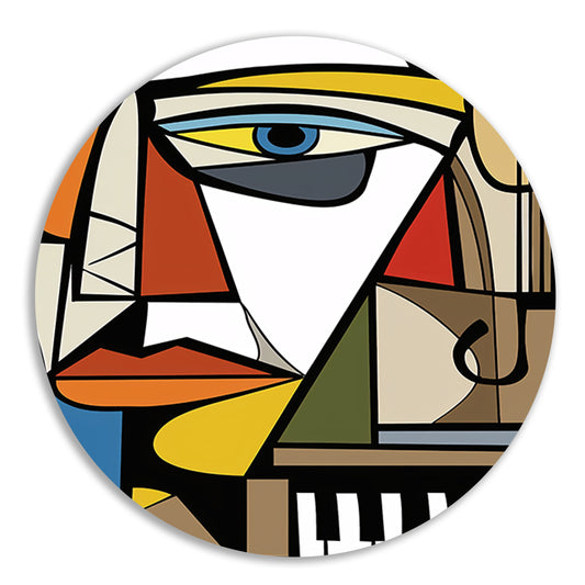 Abstract portret in kubistische stijl aluminium muurcirkel