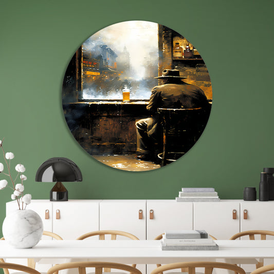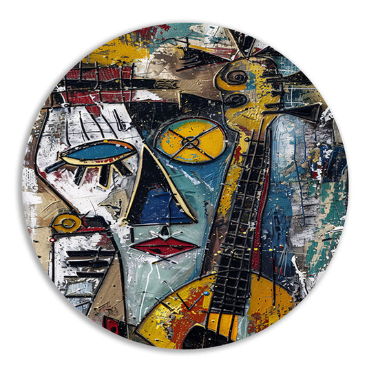 Kubistische Man met Gitaar in Melancholie aluminium muurcirkel