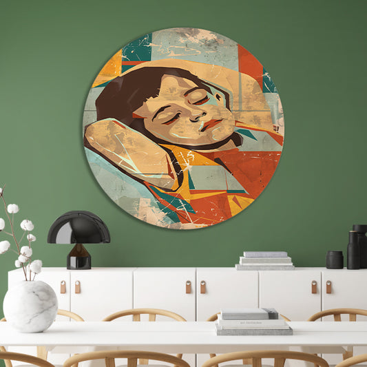 Kleurrijk slapend kind in abstracte stijl aluminium muurcirkel