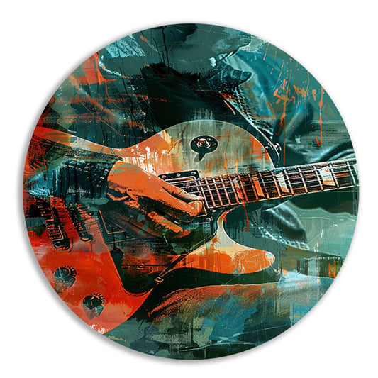 Abstracte close-up van een elektrische gitaar aluminium muurcirkel