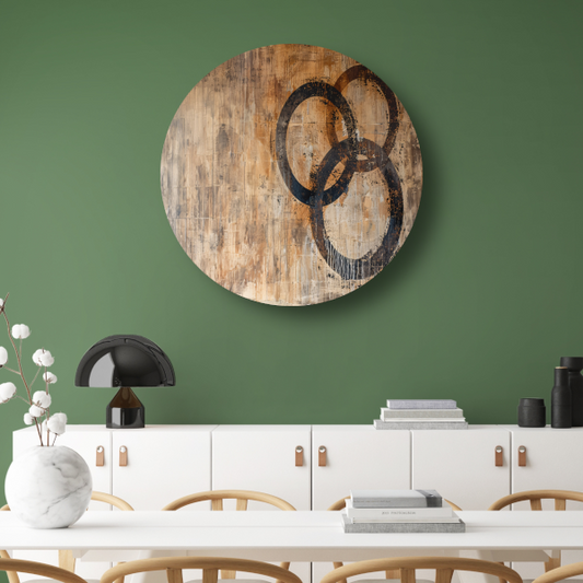 Overlappende sepia cirkels op beige achtergrond aluminium muurcirkel