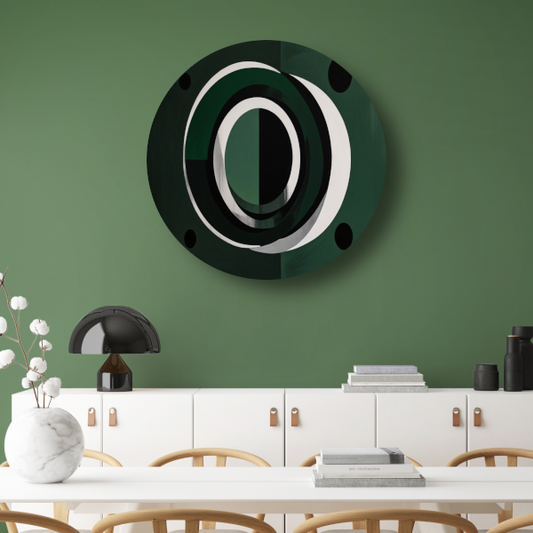 Overlappende Cirkels in Zwart, Wit en Groen aluminium muurcirkel