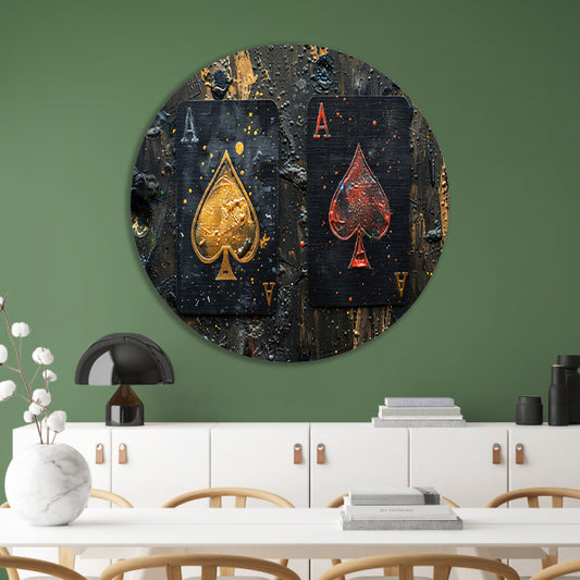 Minimalistisch Speelkaarten in Goud en Rood aluminium muurcirkel