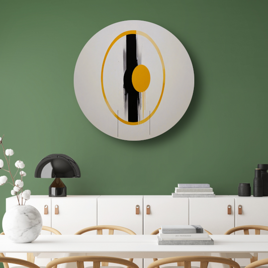 Geel-Zwarte Abstractie met Dynamische Cirkels aluminium muurcirkel