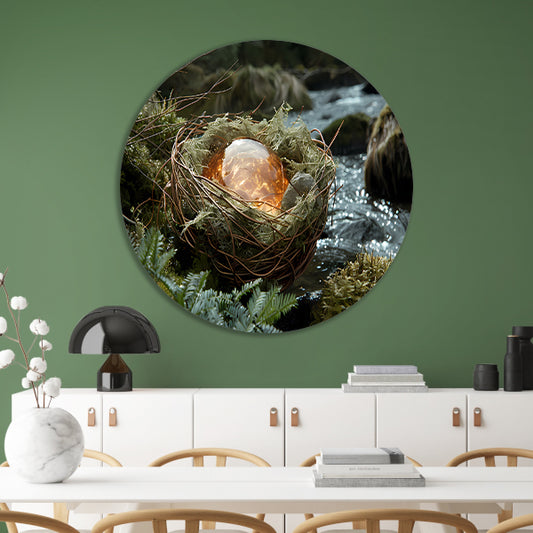 Vogelnest met glasbal in slaapkamer aluminium muurcirkel