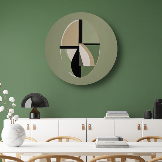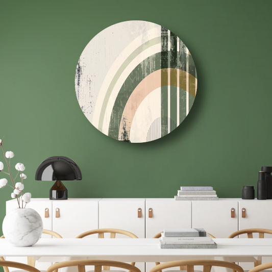 Abstracte Geometrie in Groen en Beige Tinten aluminium muurcirkel