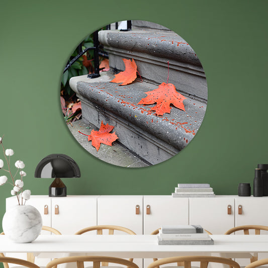 Minimalistisch Herfstbladeren aluminium muurcirkel