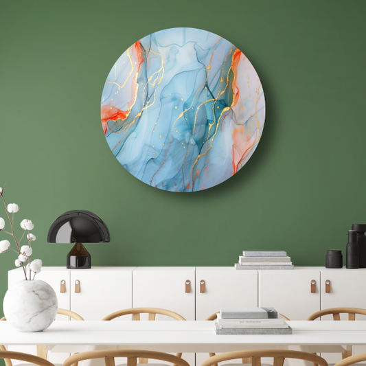 Blauw Gouden Marmer Patroon aluminium muurcirkel