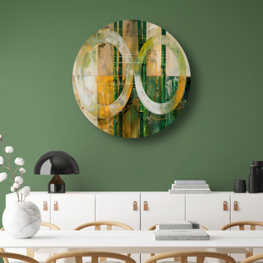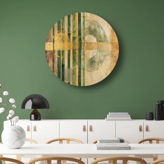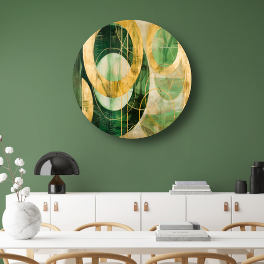 Abstracte Dans van Gouden Cirkels en Groen aluminium muurcirkel