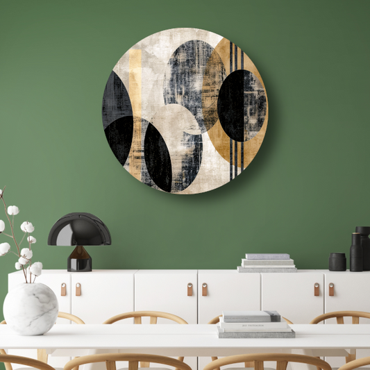 Monochrome Cirkels en Gouden Lijnen aluminium muurcirkel