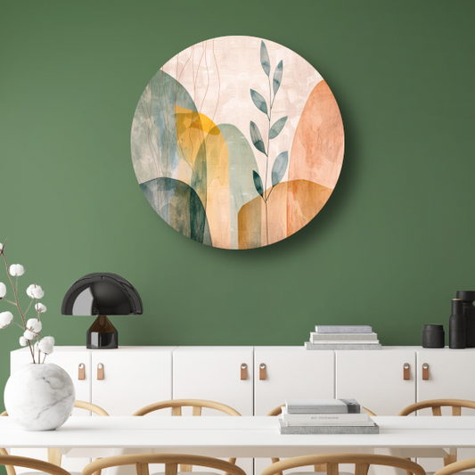 Minimalistische natuur in abstracte aardetinten aluminium muurcirkel