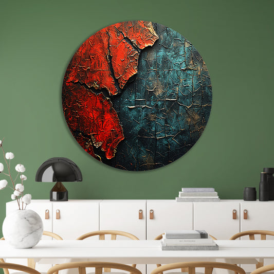 Blauw-Rood Abstract Expressie aluminium muurcirkel