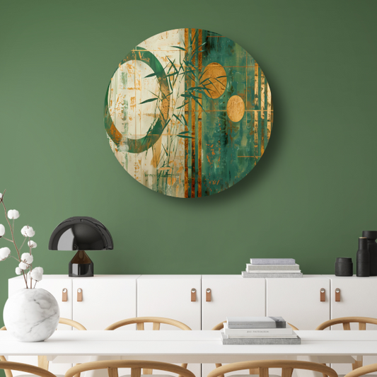 Moderne Bamboe en Gouden Cirkels Abstract aluminium muurcirkel