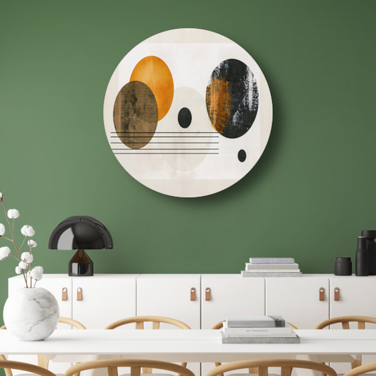 Abstracte harmonie van cirkels en lijnen aluminium muurcirkel