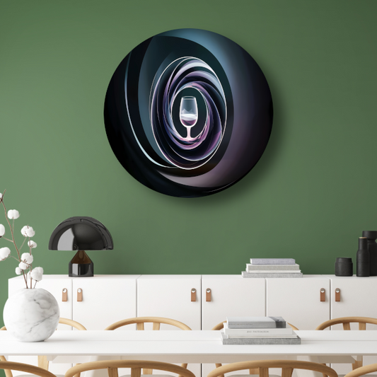 Abstracte spiralen rondom centraal glas aluminium muurcirkel