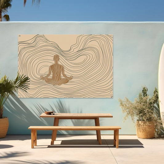 Mediterende figuur in minimalistische lijntekening tuinposter