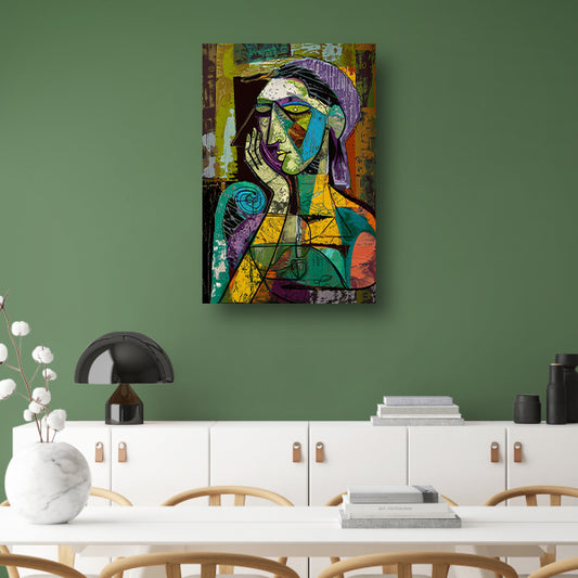 Kubistisch portret van een vrouw in gedachten acrylglas