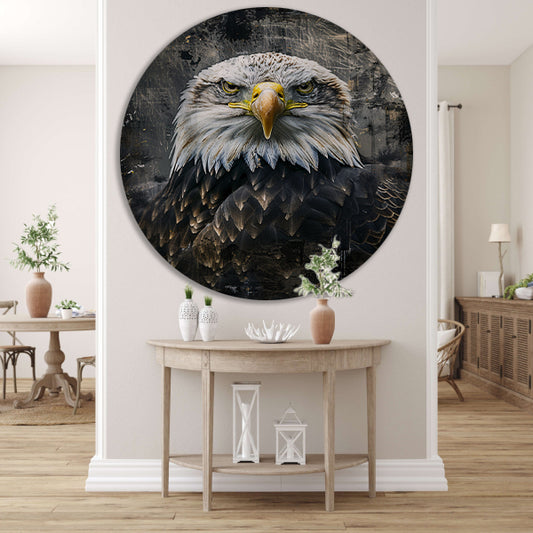 Mysterieuze adelaar portret in rustieke stijl aluminium muurcirkel