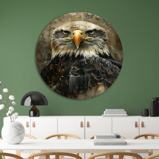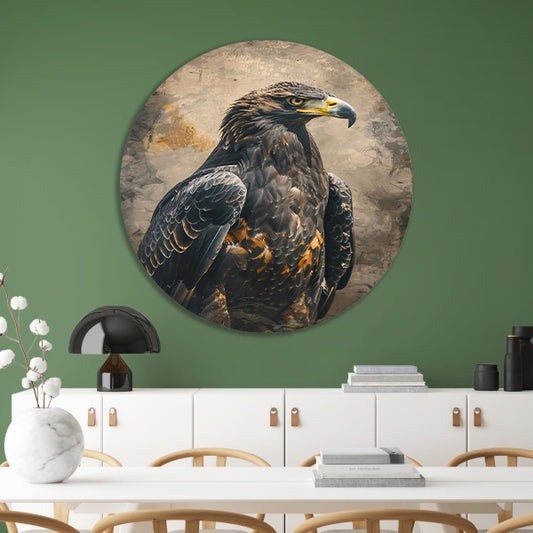 Mysterieuze adelaar met rustieke achtergrond aluminium muurcirkel
