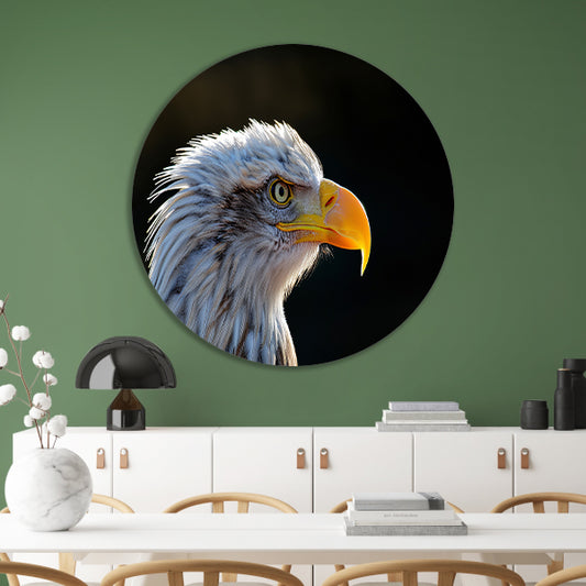 Dynamisch portret van adelaar in rustieke stijl aluminium muurcirkel