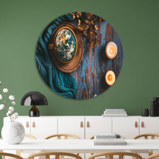 Aarde met Sterren in Abstracte Stijl aluminium muurcirkel