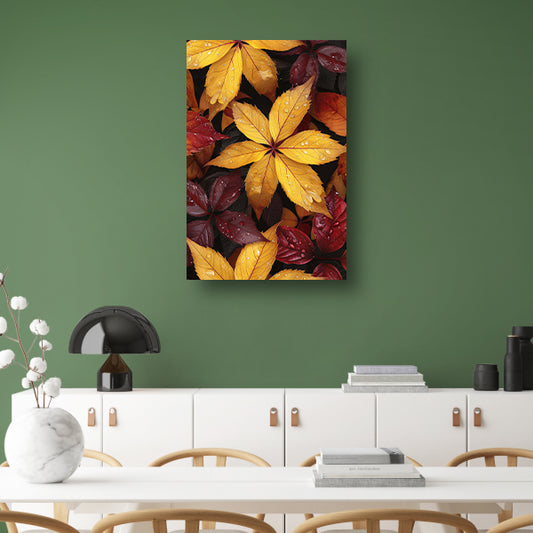 Kleurrijk herfstbladeren met waterdruppels canvas