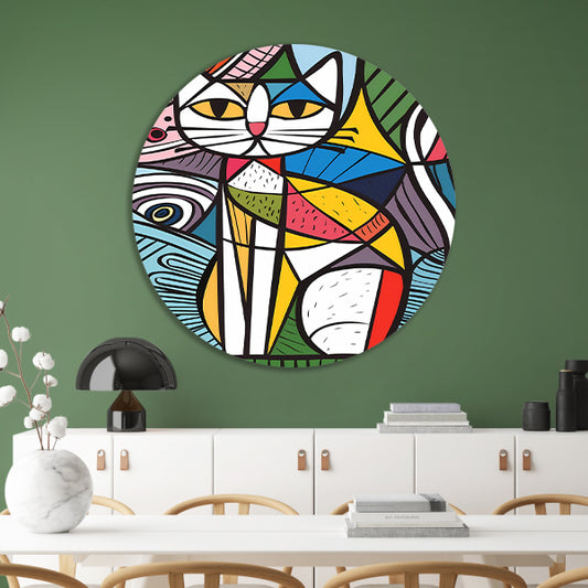 Kleurrijk kubistisch kat schilderij met patronen forex muurcirkelNormale prijs Vanaf €35,95Normale prijsEenheidsprijs / per-