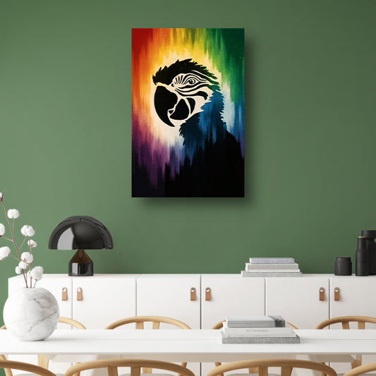 Kleurrijk papegaai silhouet met abstracte achtergrond canvas met baklijst