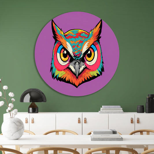 Kleurrijk popart-uilenportret voor moderne interieurs aluminium muurcirkel