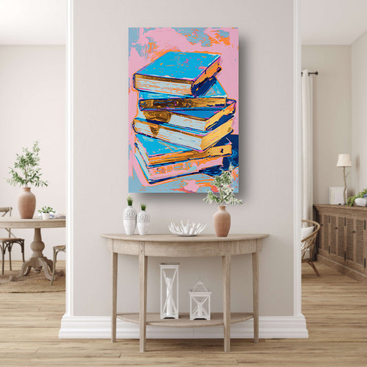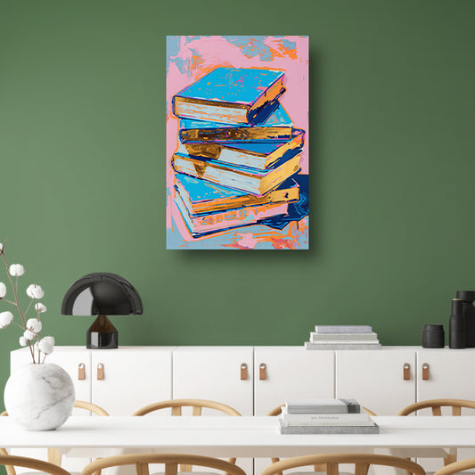 Kleurrijk popart schilderij van stapel boeken canvas