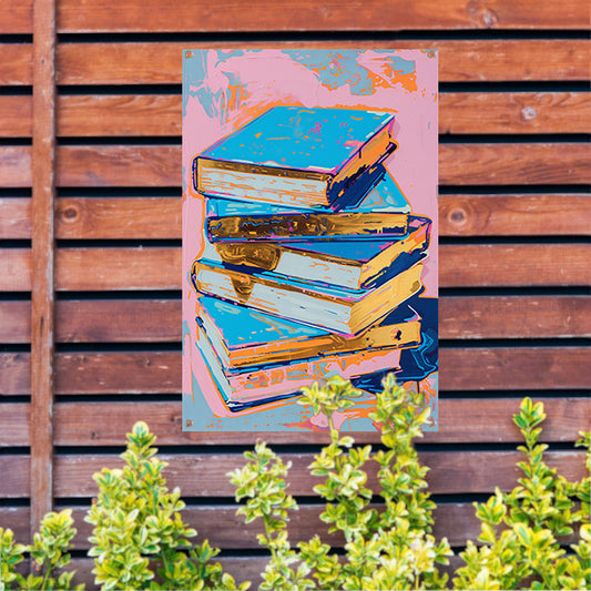 Kleurrijk popart schilderij van stapel boeken tuinposter