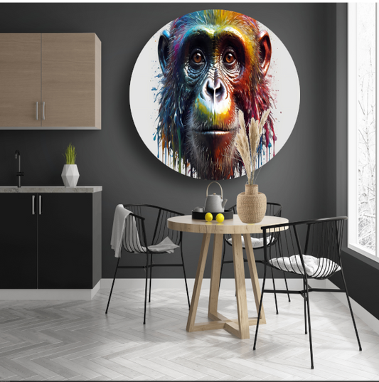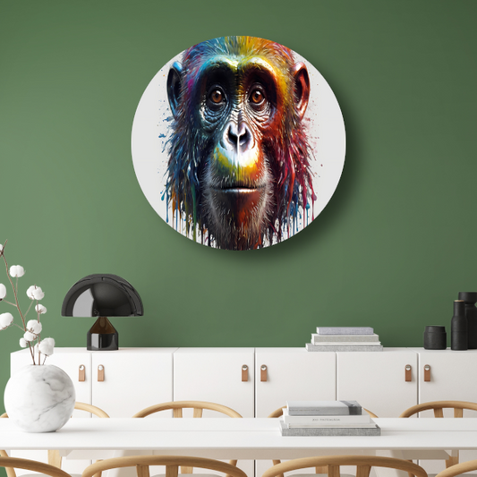 Kleurrijk Portret van een Aap met Verf aluminium muurcirkel