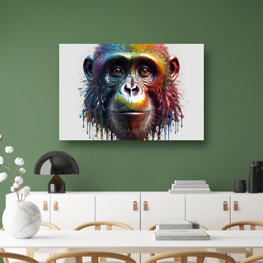 Kleurrijk Portret van een Aap met Verf canvas met baklijst