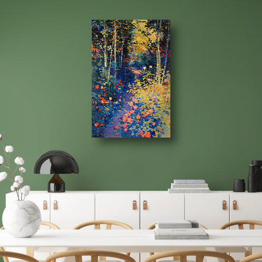 Kleurrijk schilderij van een bloemenrijk bos canvas