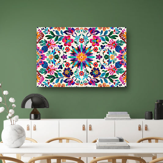 Kleurrijk traditioneel bloemenpatroon met bladeren canvas