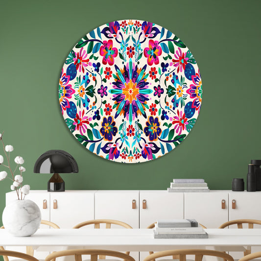 Kleurrijk traditioneel bloemenpatroon met bladeren aluminium muurcirkel