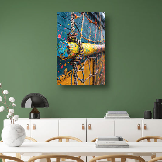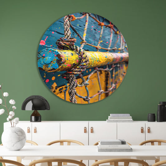 Kleurrijk touw met verfspatten aluminium muurcirkel