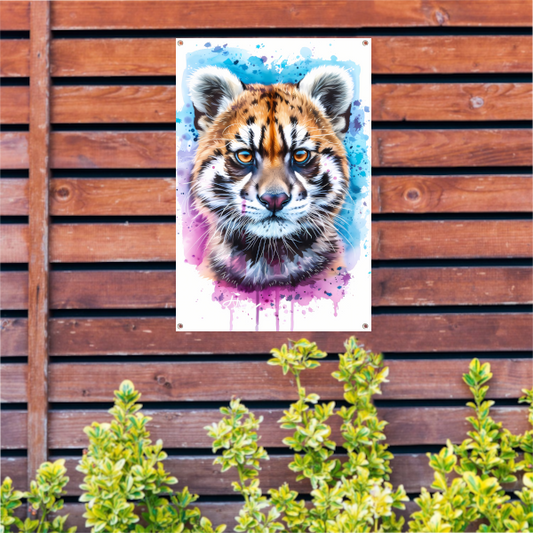 Kleurrijk tijgerportret in aquarelstijl tuinposter