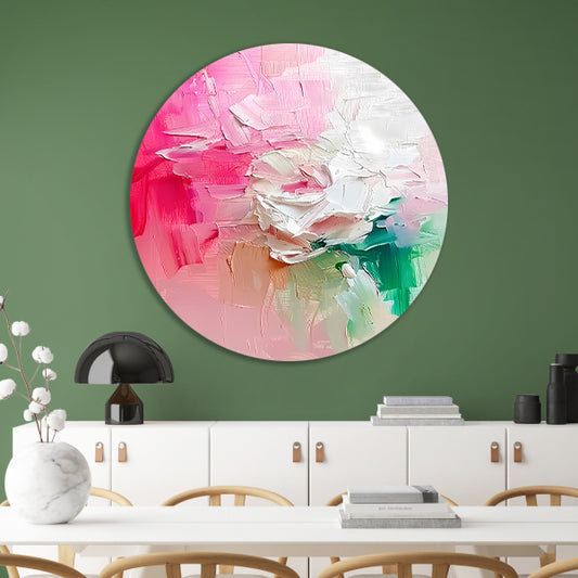 Kleurrijke abstracte bloemen schilderij aluminium muurcirkel