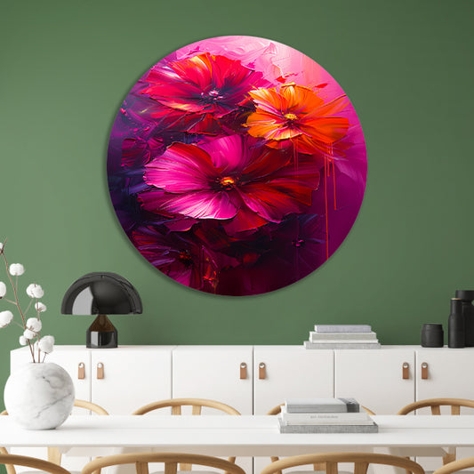 Kleurrijke abstracte bloemen met dynamische tinten aluminium muurcirkel