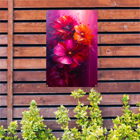 Kleurrijke abstracte bloemen met dynamische tinten tuinposter