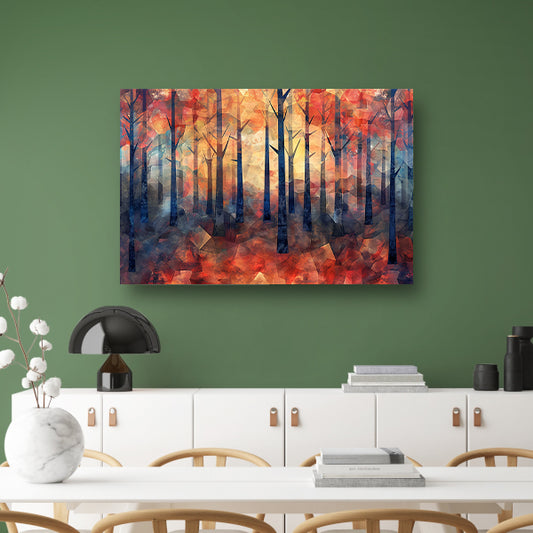 Kleurrijke abstracte bos schilderij in herfst canvas