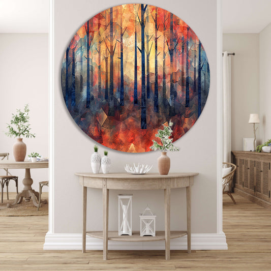 Kleurrijke abstracte bos schilderij in herfst forex muurcirkel