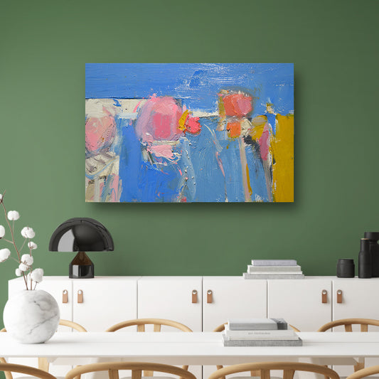 Kleurrijke abstracte expressie schilderij canvas met baklijst