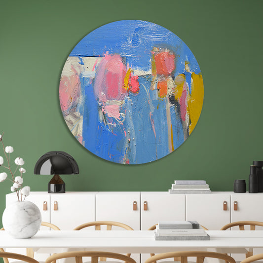 Kleurrijke abstracte expressie schilderij aluminium muurcirkel
