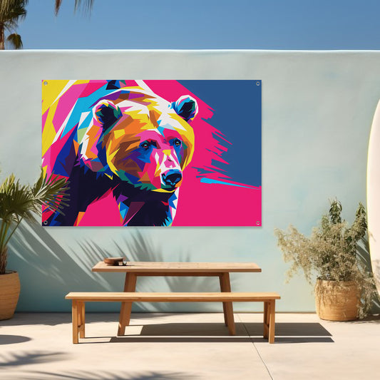Kleurrijke abstracte geometrische beer aluminium muurcirkel
